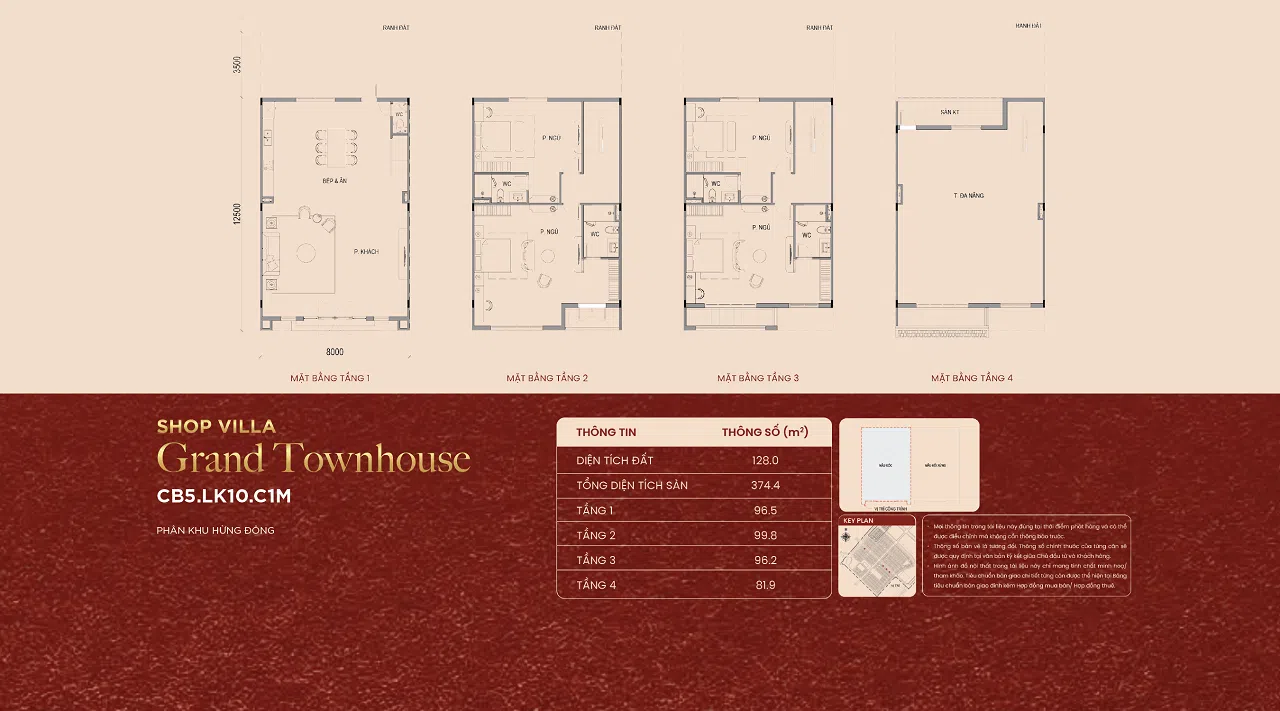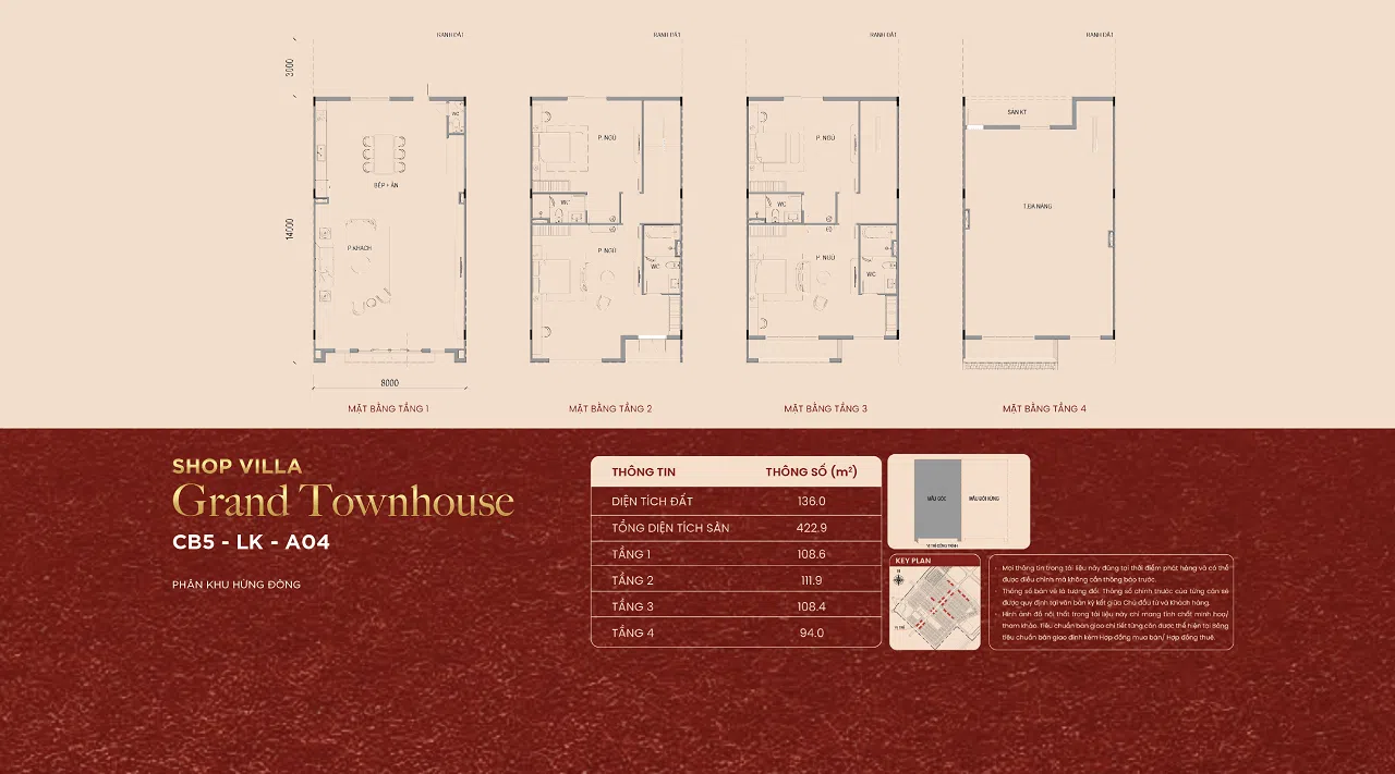 | Thiết kế | 100% căn đều có mặt tiền rộng 8m |