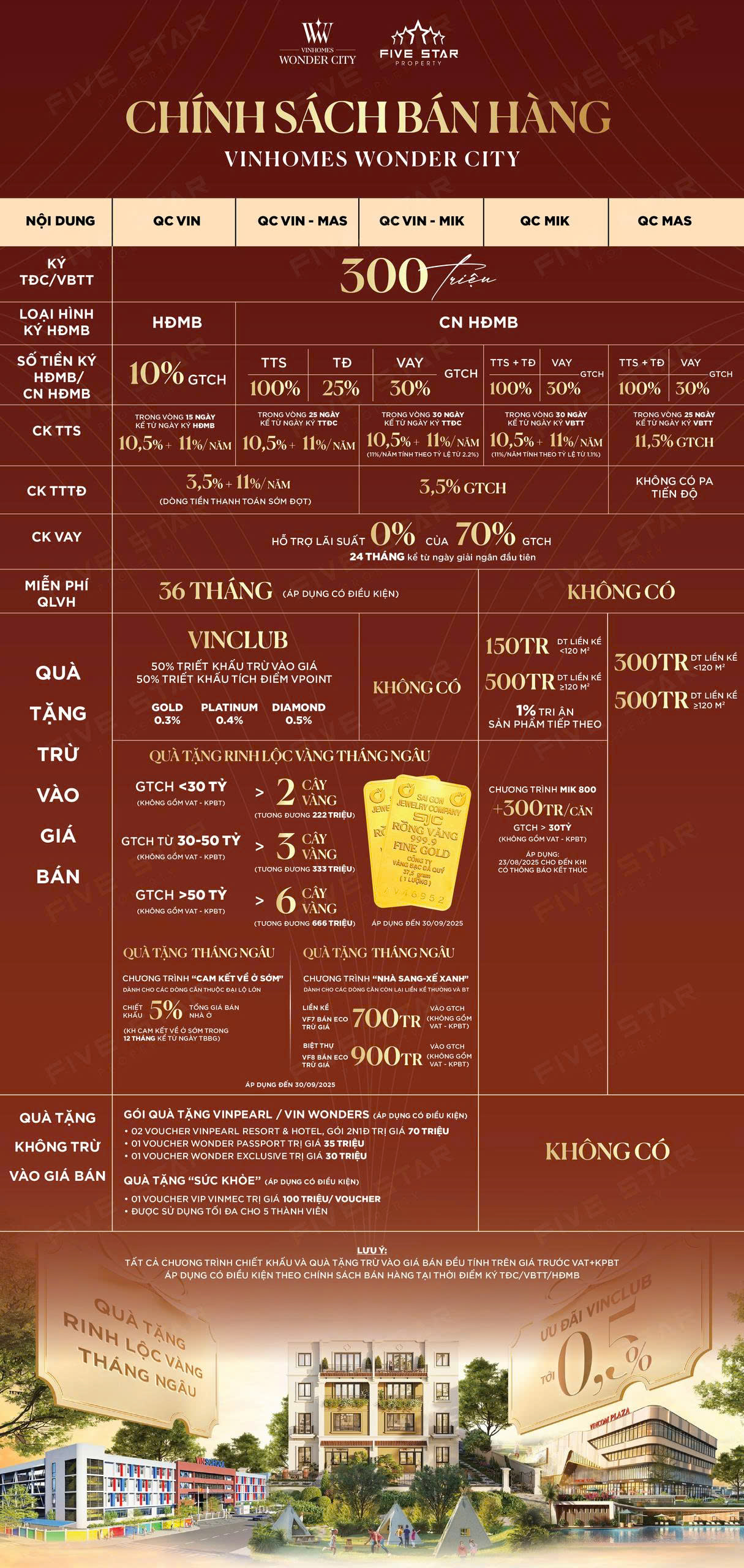 | Hỗ trợ vay ngân hàng | Ngân hàng hỗ trợ vay tối đa 70% giá trị HĐMB, hưởng ưu đãi 0% lãi suất & miễn trả gốc trong 24 tháng. |